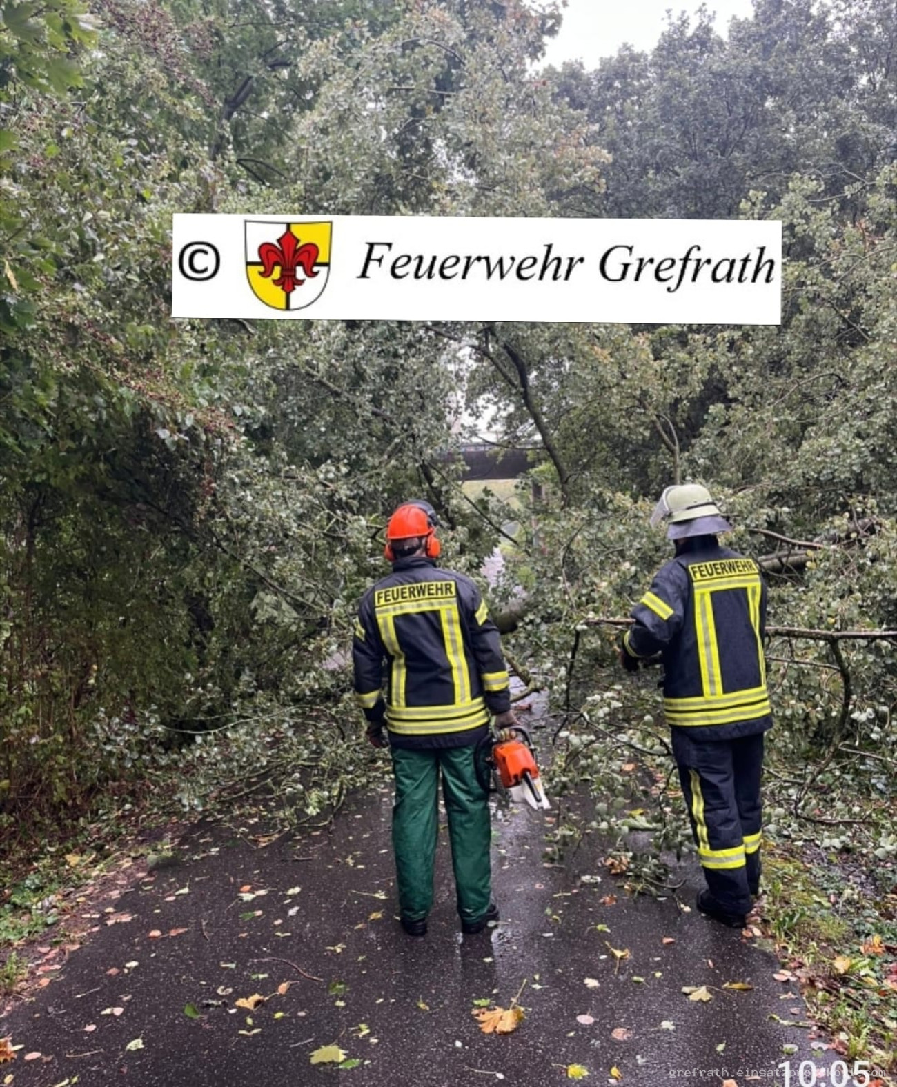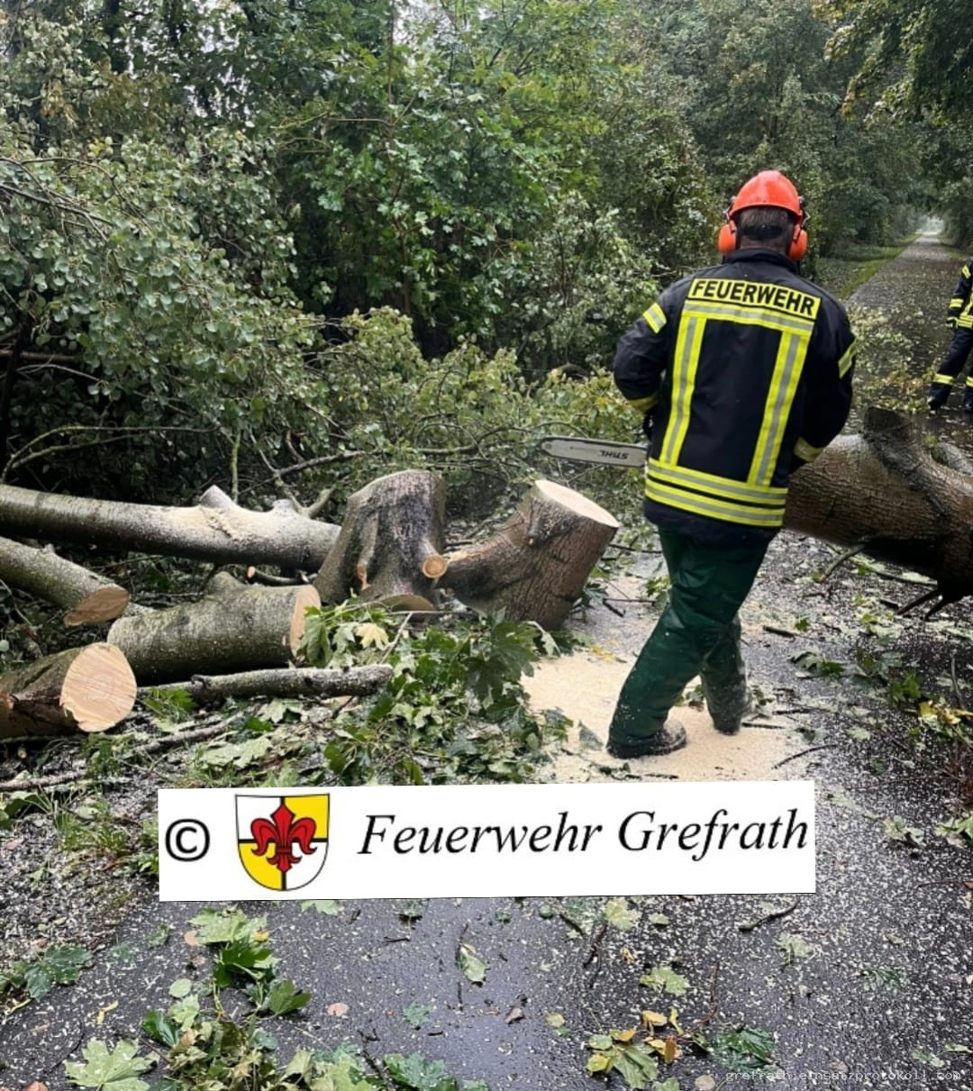 Ein Baum ist auf den Weg gestürzt und wurde mittels Kettensäge von der Fahrbahn geräumt.