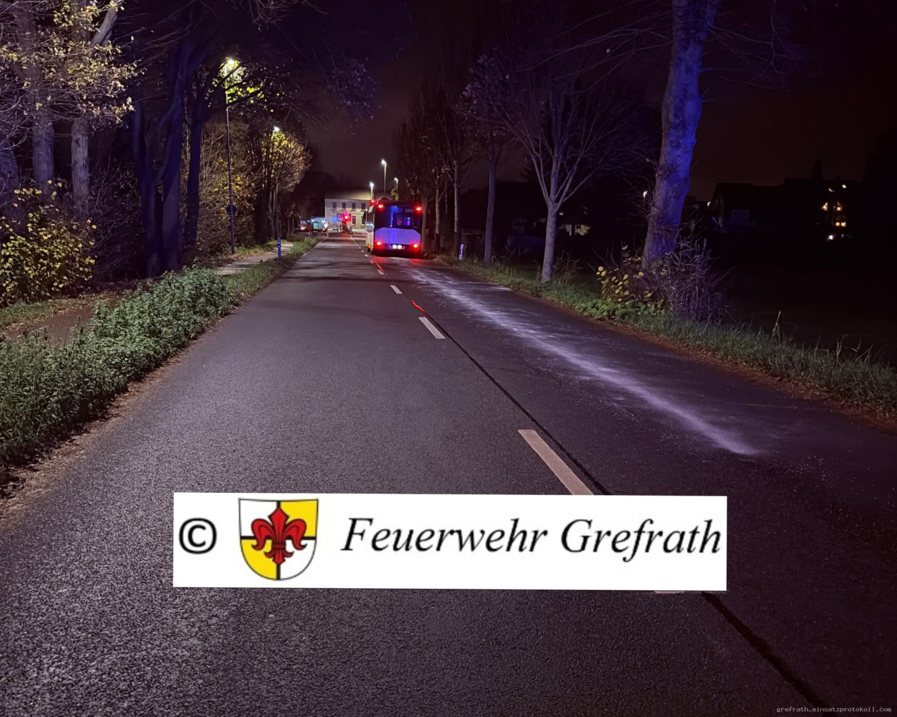 Der Kreisleitstelle wurde ein Linienbus gemeldet, der verraucht war. Die Gesamtwehr Grefrath wurde alarmiert. Die ersteintreffenden Kräfte stellten einen Defekt am Motor fest. Auslaufende Betriebsmittel wurden abgestreut, die Einsatzstelle abgesichert und ausgeleuchtet. Nach Beendigung aller Maßnahmen wurde die Einsatzstelle dem Busunternehmer und der Polizei übergeben.