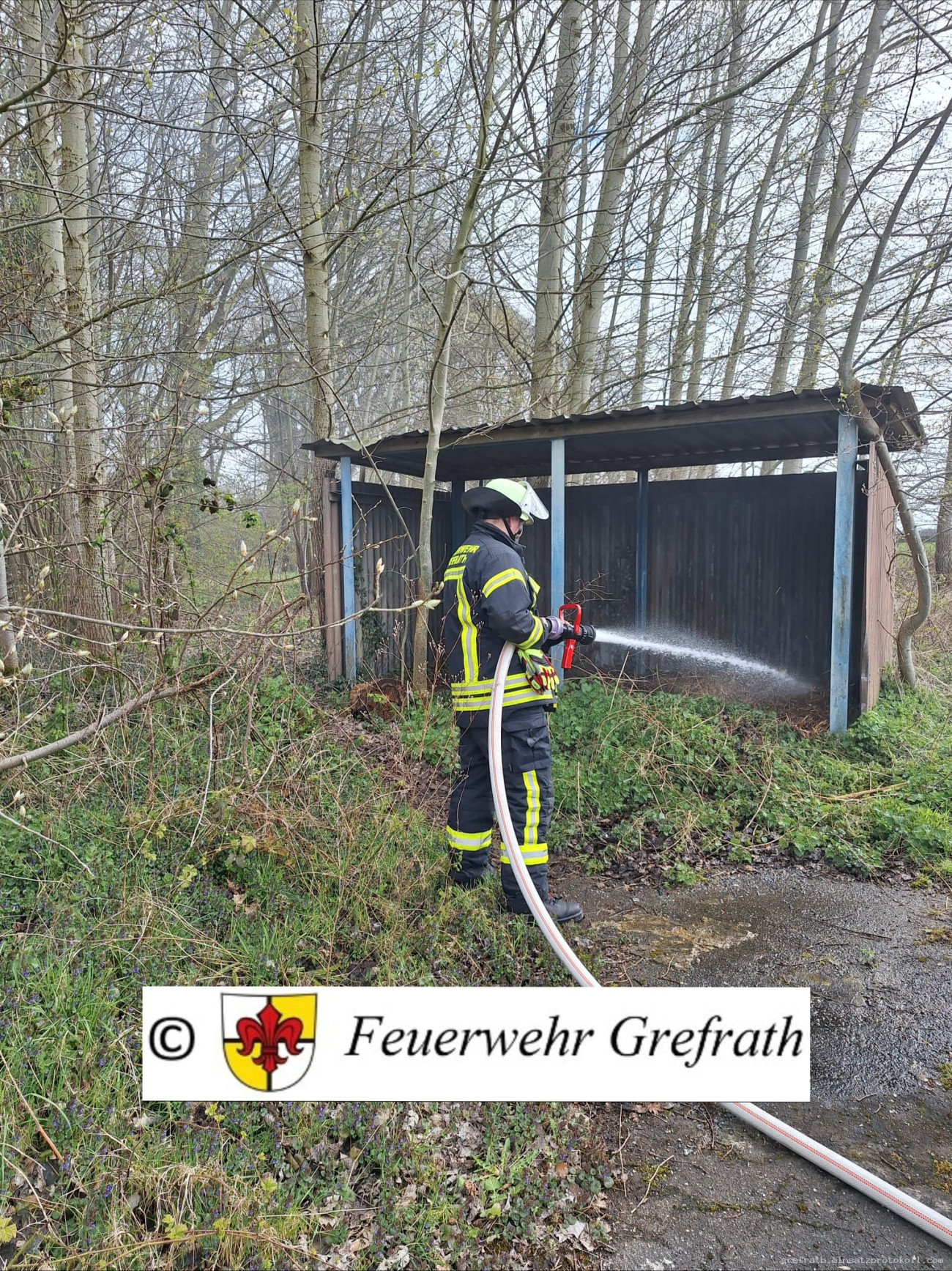Die Kreisleitstelle in Viersen alarmierte die Gesamtwehr Grefrath mit dem Stichwort Wohnungsbrand. Vor Ort brannte eine kleine Hütte mit Stroh. Das Feuer wurde mit einem C Rohr abgelöscht. Nach Beendigung aller Maßnahmen wurde die Einsatzstelle der Polizei übergeben.